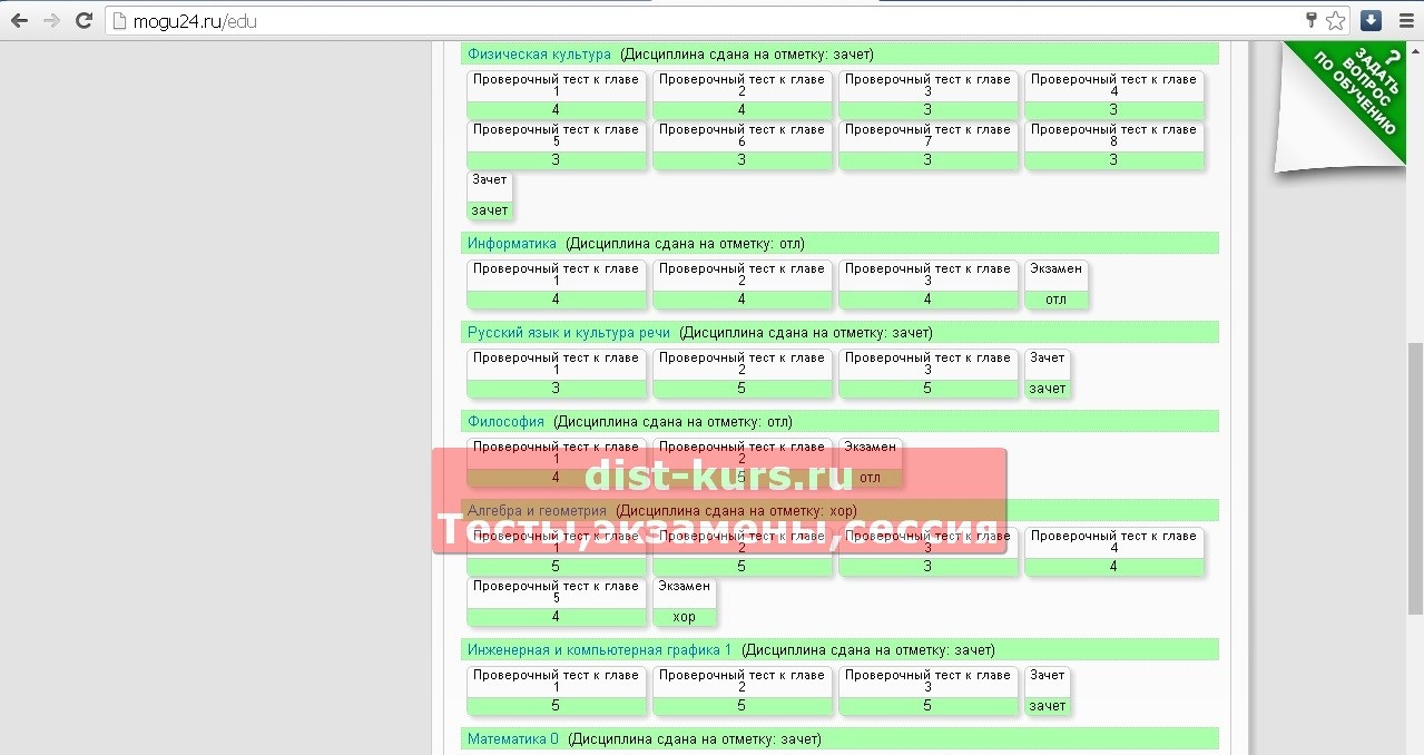 Помогаем сдавать дистанционные тесты, зачеты, экзамены.